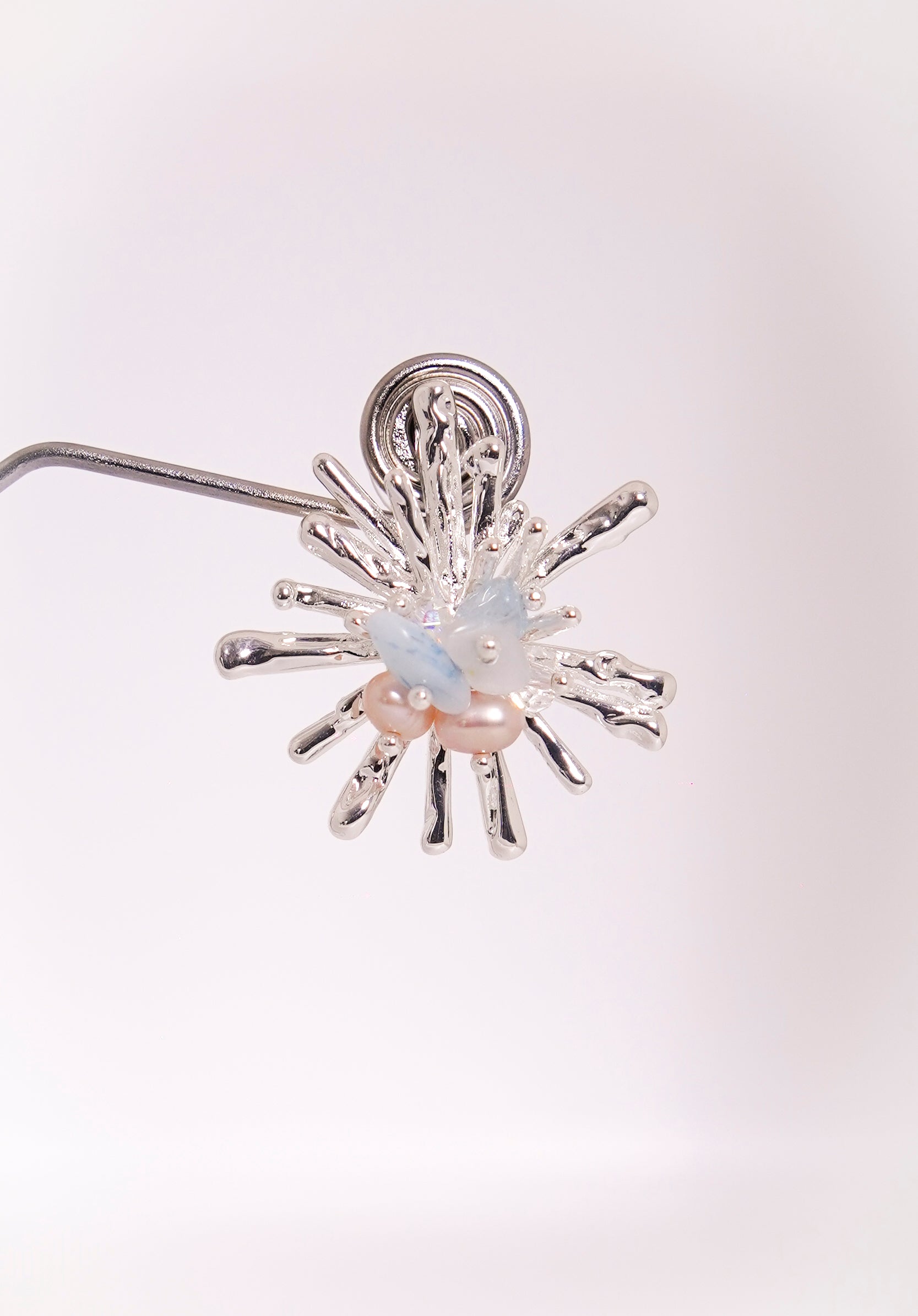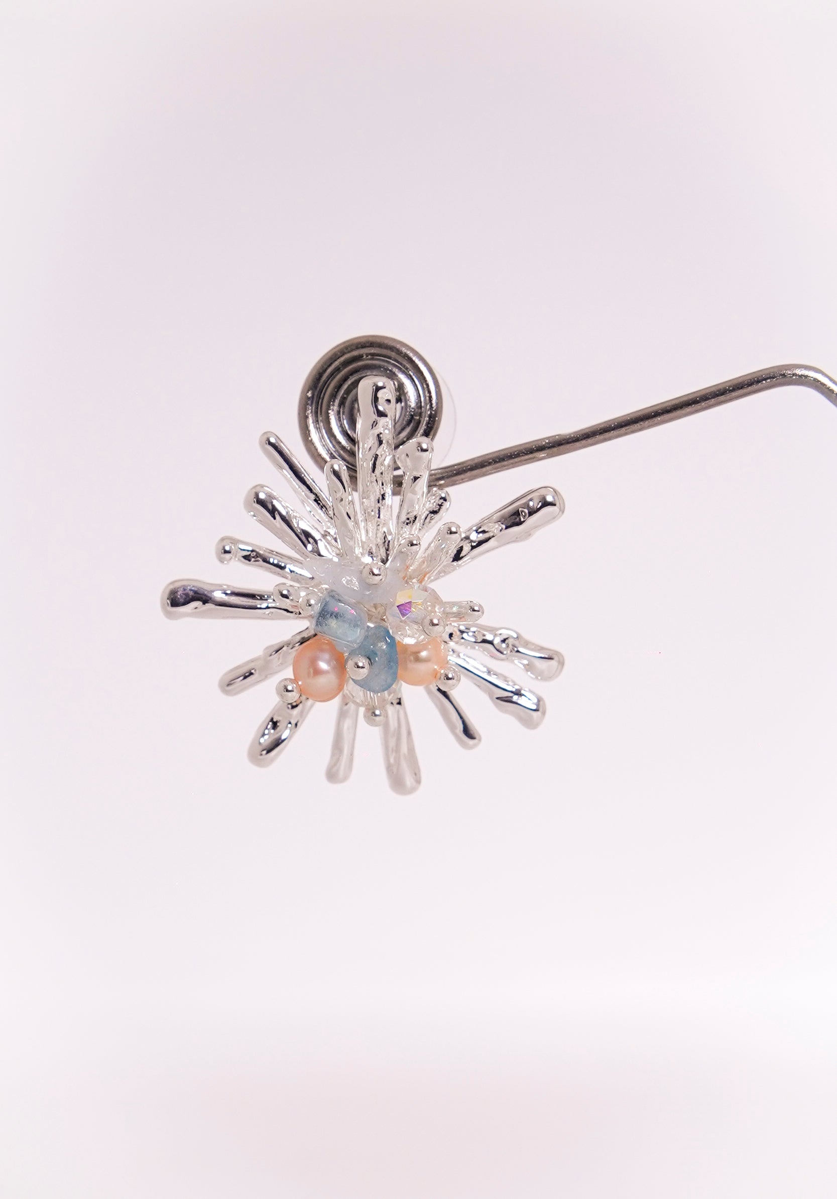 Design:A central cluster of beads surrounded by radiating metal spikes.